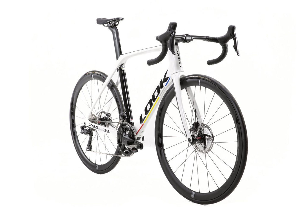 A design featuring the iconic brand colors, a symbol of performance and expertise in carbon technologies The new Shimano Ultegra Di2 R8100 12 speed electronic group for maximum reliability and efficiency LOOK R38D full carbon wheels, built for speed