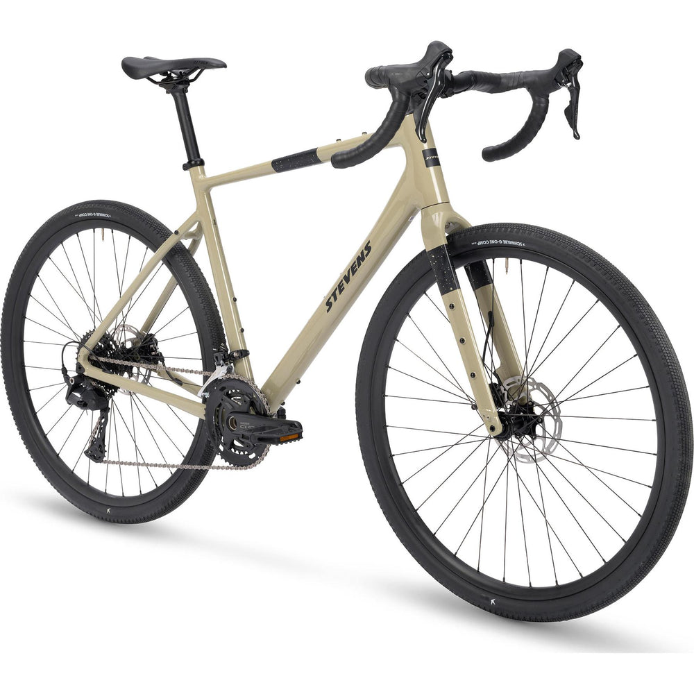 A gravel all-rounder with excellent value for money The Gavere is the ideal companion for commuting, after-work rides, and bikepacking adventures. The newly developed, elegant aluminum frame in Light Khaki with a lightweight aluminum fork ensures smooth and comfortable riding thanks to its relaxed geometry. The Shimano CUES 2x10 drivetrain lets you shift effortlessly at your fingertips, while the wide gear ratio ensures a safe, confident ride – whether in the city or outdoors. The generous tire clearance allows for fast and comfortable riding at reduced tire pressure. Equipped with fast-rolling 45 mm Schwalbe G-One Comp tires, the Gavere offers optimal grip and control on gravel roads, forest paths, and flowing trails.