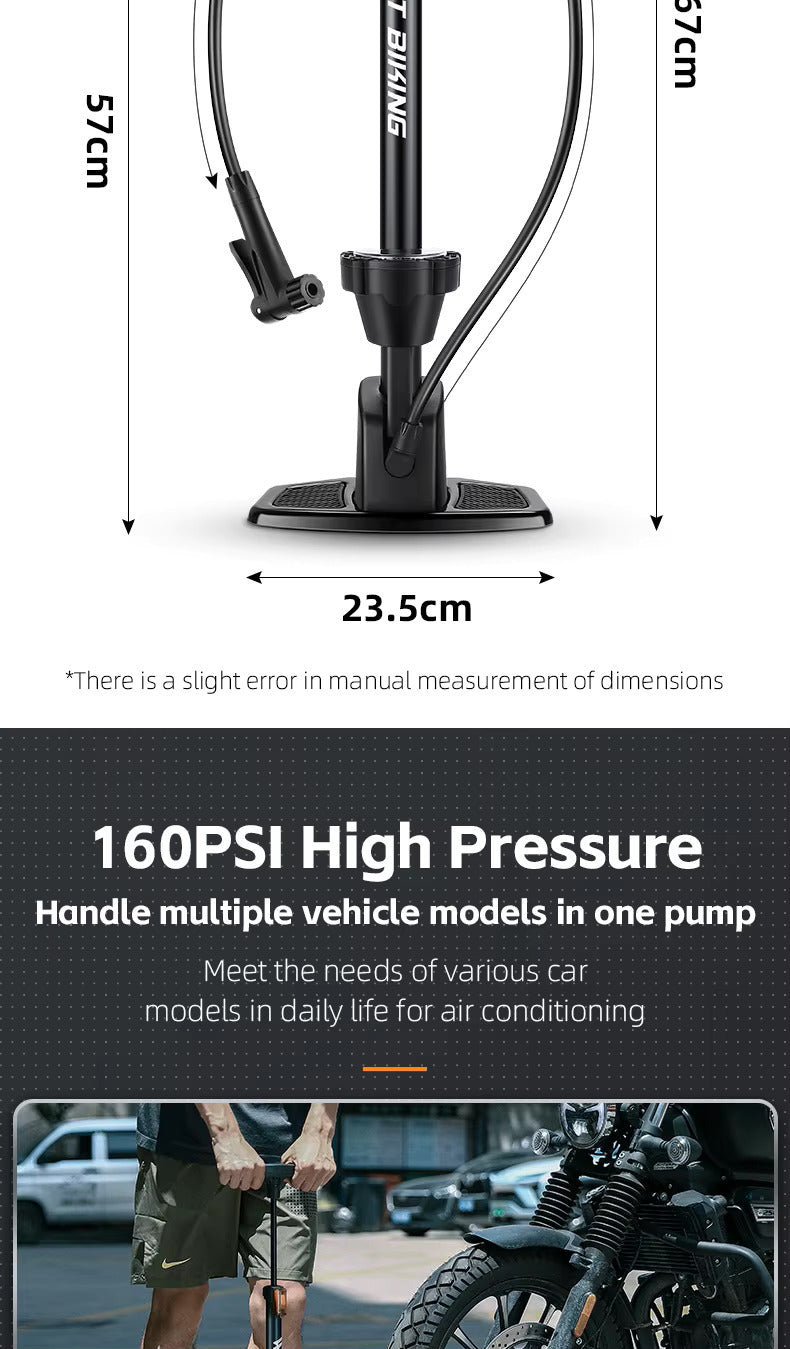 Durable Material: Made of high-quality aluminum alloy, this bike floor pump is built to last and withstand heavy use.